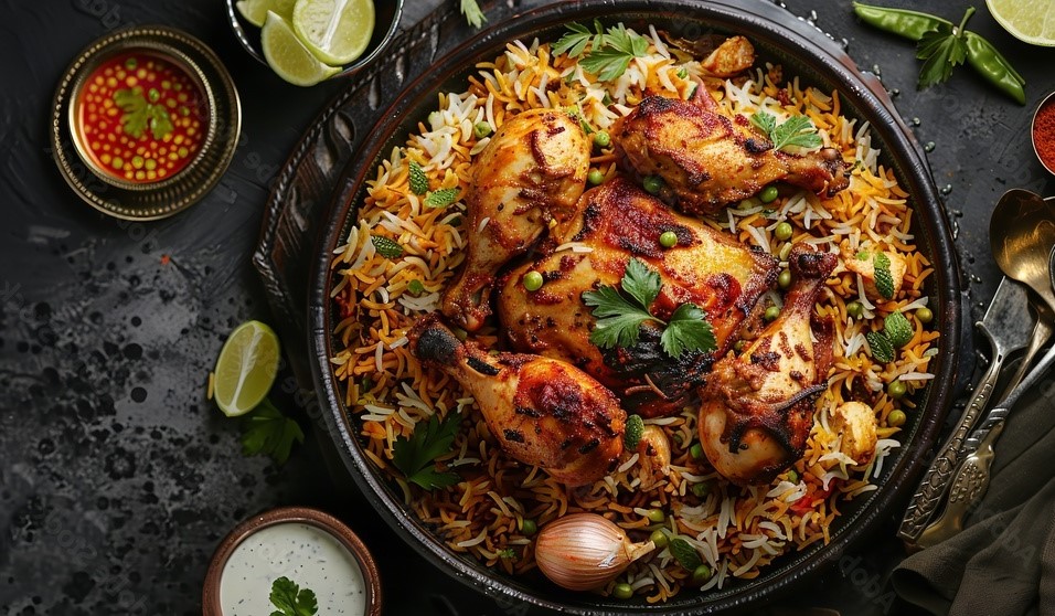 Biryani is a mixed rice dish, mainly popular in South Asia. It is made with rice, chicken and spices.