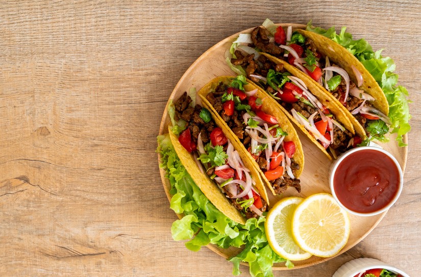 Shrimp Tacos are loaded with juicy shrimp, crisp cabbage, avocado, cotija cheese, cilantro and shrimp taco sauce.
